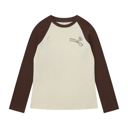 Apricot and Brown Slim-Fit Lace Long Sleeve